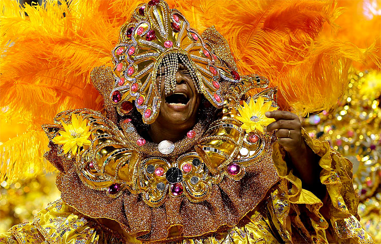 A dancer of the Gavioes da Fiel samba school performs in Sao Paulo . (Andre Penner/Associated Press)