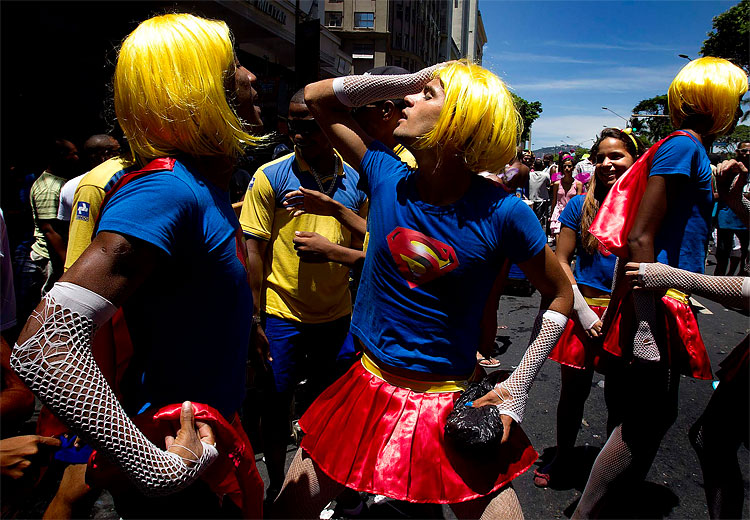 Revelers dance during the Cordao da Bola Preta parade in downtown Rio de Janeiro . (Victor R. Caivano/Associated Press)