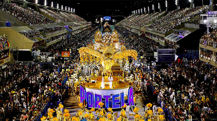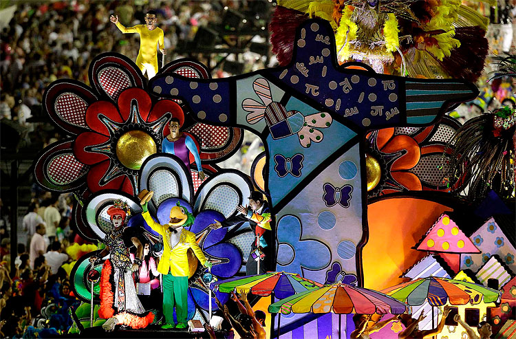 Dancers from the Portela samba school dance on a float at the Sambadrome in Rio de Janeiro . (Felipe Dana/Associated Press)