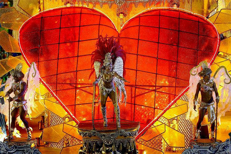 A dancer from the Mocidade samba school performs on a float during celebrations at the Sambadrome in Rio de Janeiro . (Felipe Dana/Associated Press)