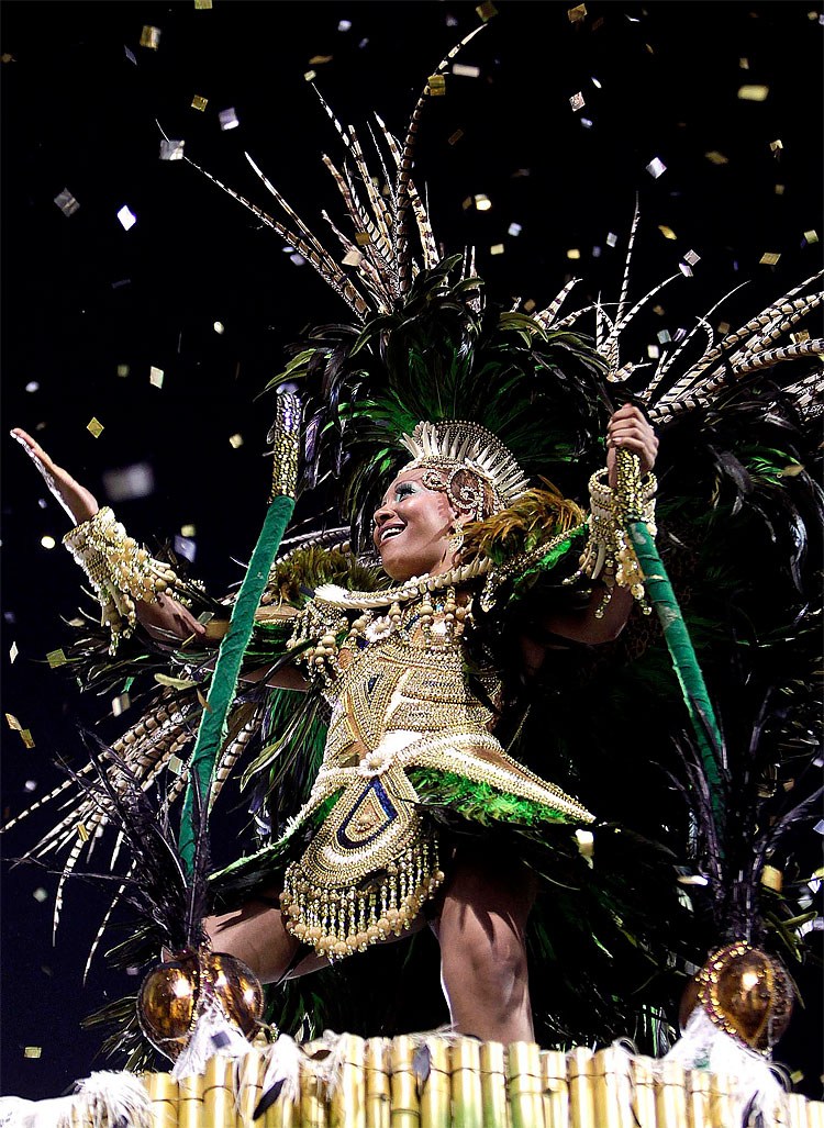 A dancer performs during the Carnival parade of the Imperio de Casa Verde samba school in Sao Paulo . (Andre Penner/Associated Press)