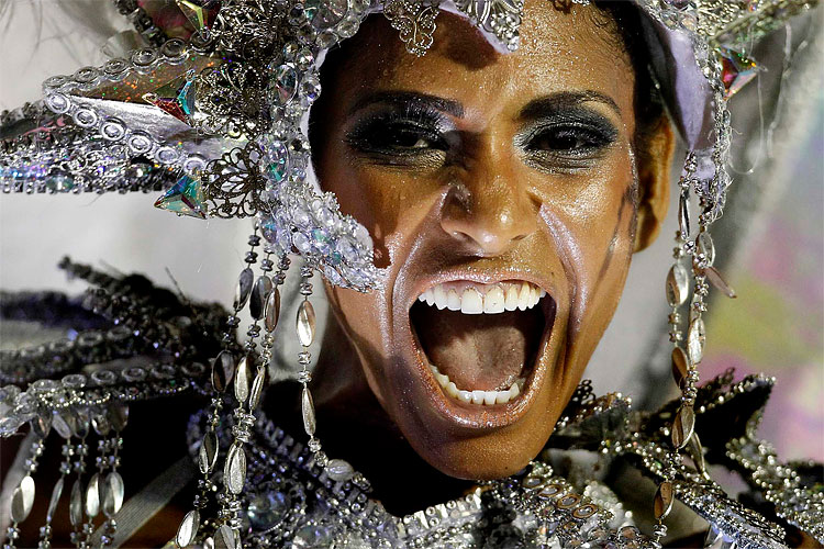A performer from the Renascer de Jacarepagua samba school dances at the Sambadrome in Rio de Janeiro . (Silvia Izquierdo/Associated Press)