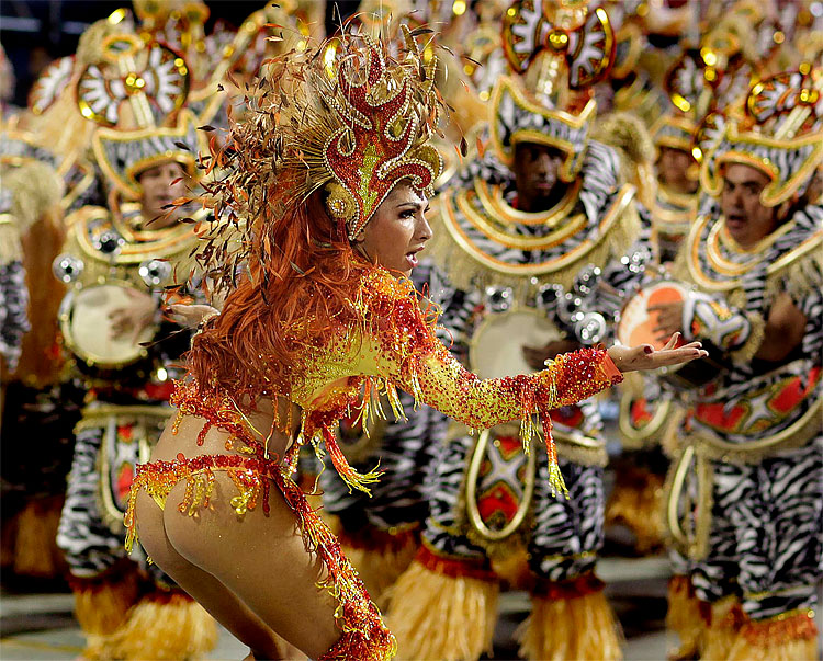 A dancer from the Mocidade Alegre samba school performs in Sao Paulo . (Andre Penner/Associated Press)