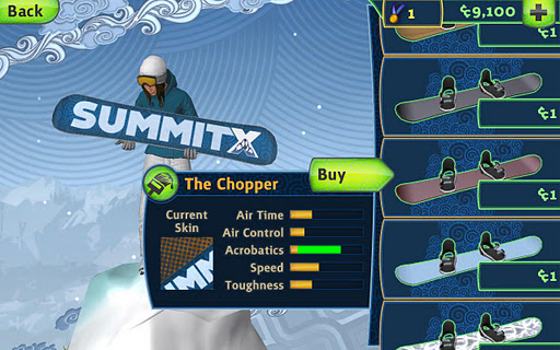 Trong SummitX Snowboarding, cảm thấy như bạn đang thực sự rơi xuống xuống núi. Game có đồ hoạ chất lượng HD đẹp nhất so với bất kỳ trò chơi trượt tuyết di động trên thế giới. Hãy cảm nhận tốc độ. Bằng cách thực hiện những thủ thuật nhào lộn bạn sẽ kiếm được rất nhiều tiền.